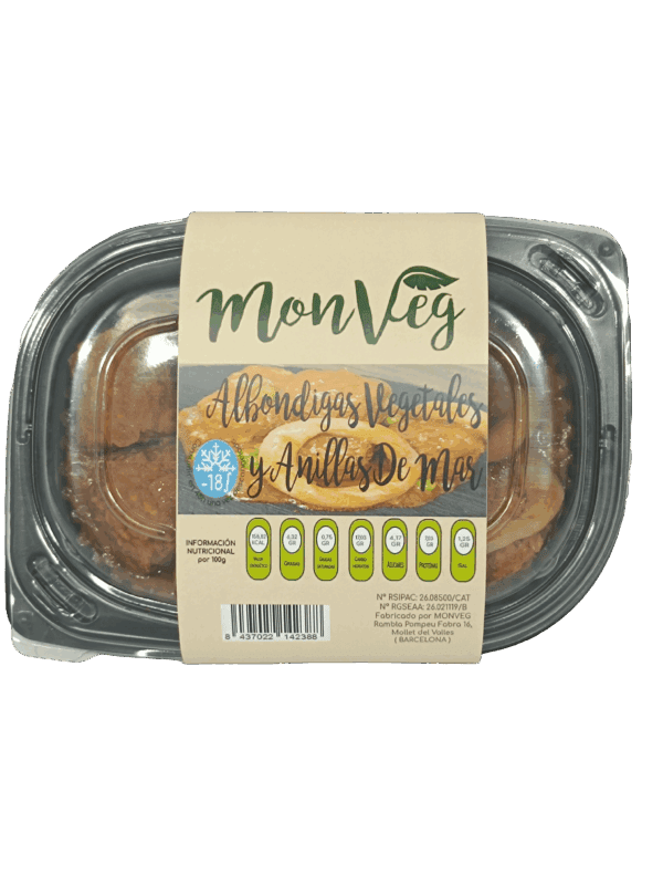 Ingredientes: agua, avena, soja texturizada, sabor calamar ((Agua, almidón de tapioca, polvo de konjac, aceite de soja (no transgénico), gluten, almidón de maíz, azúcar, sal, extracto de algas, colorante natural.)). tomate frito ((Tomate natural triturado (93%), aceite de girasol, azúcar, sal, almidón de maíz, cebolla en polvo (0,1%), aroma de cebolla frita, acidulante (ácido cítrico)). guisantes, lino, cebolla, vino blanco, aceite de girasol, ajo, perejil y sal.